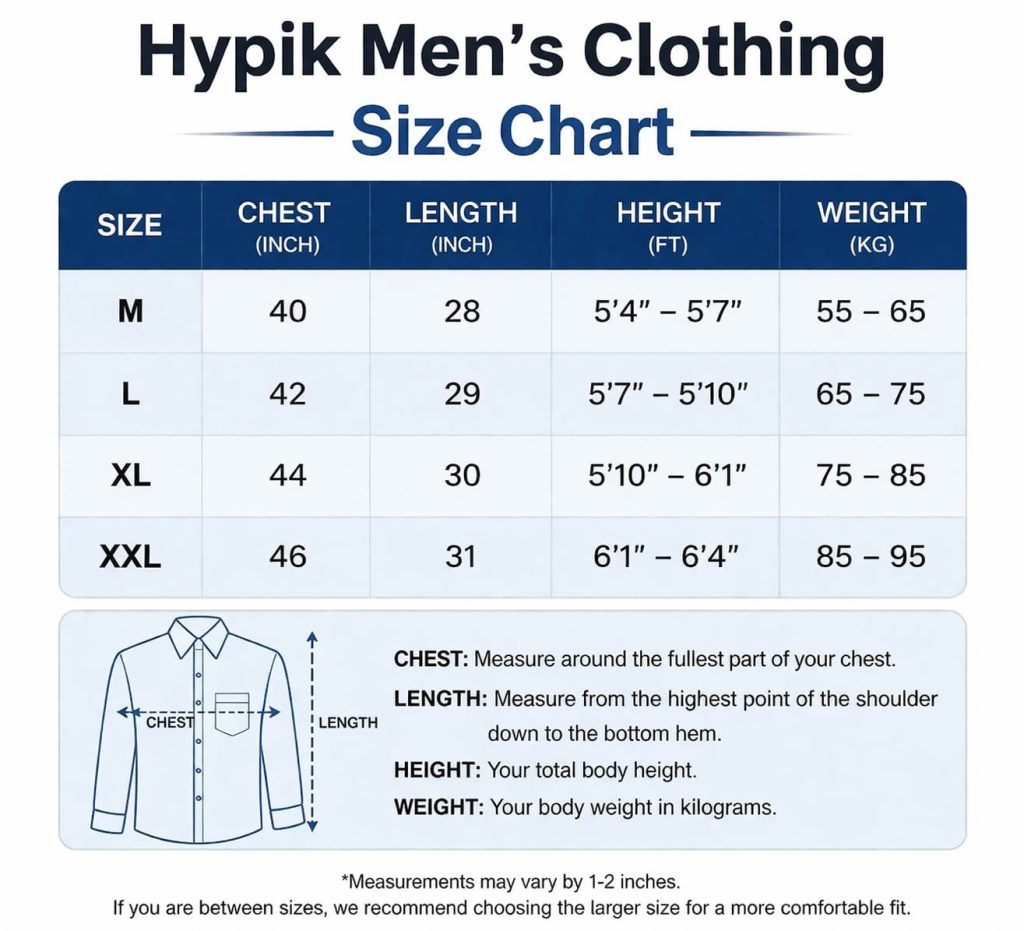 সাইজ সিলেক্ট করুন *M - Chest : 40", Length : 28"L - Chest : 42", length : 29"XL - Chest : 44", Length : 30"XXL - Chest : 46", length 31"